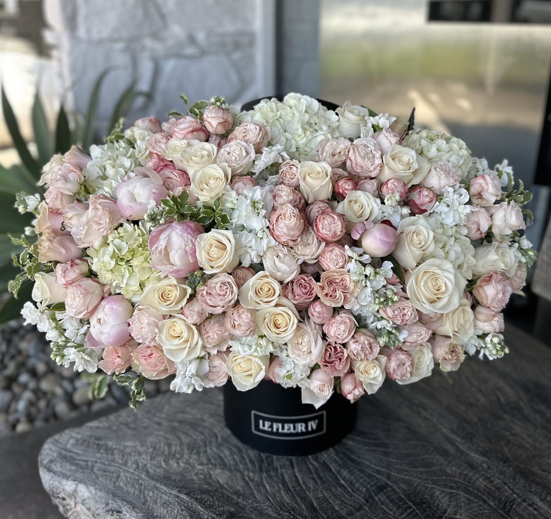 PEONIES SIZE WILL VARY. Flowers (of equal value) and colors (if available) can be customized at check out. We will confirm your order via email or text before it gets processed.