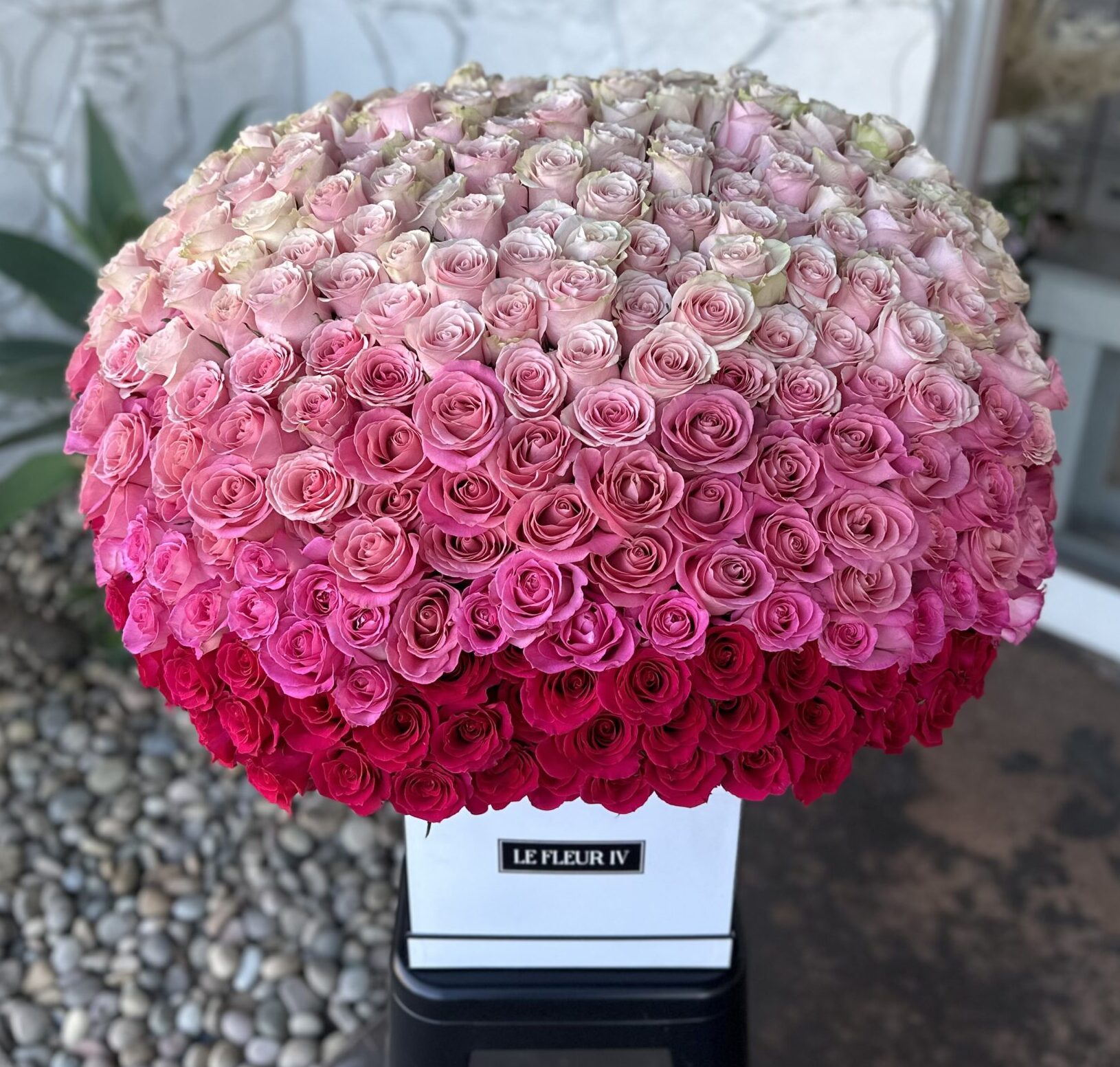 Over 200 roses! Large pink ombre roses in white deluxe square signature flower box.